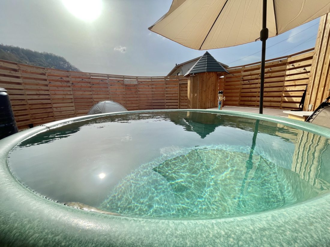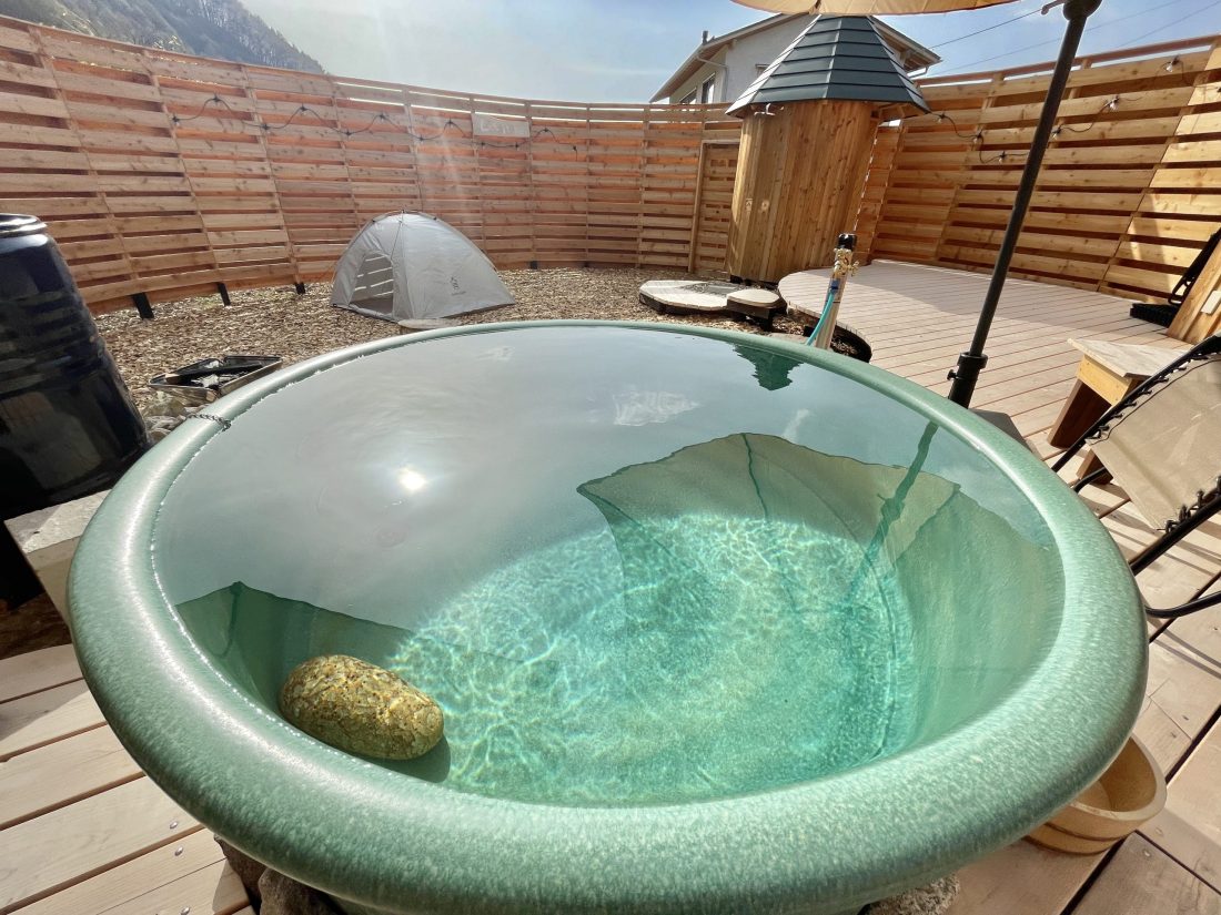 水風呂は茅野市の地下水が使われた陶器の水風呂。