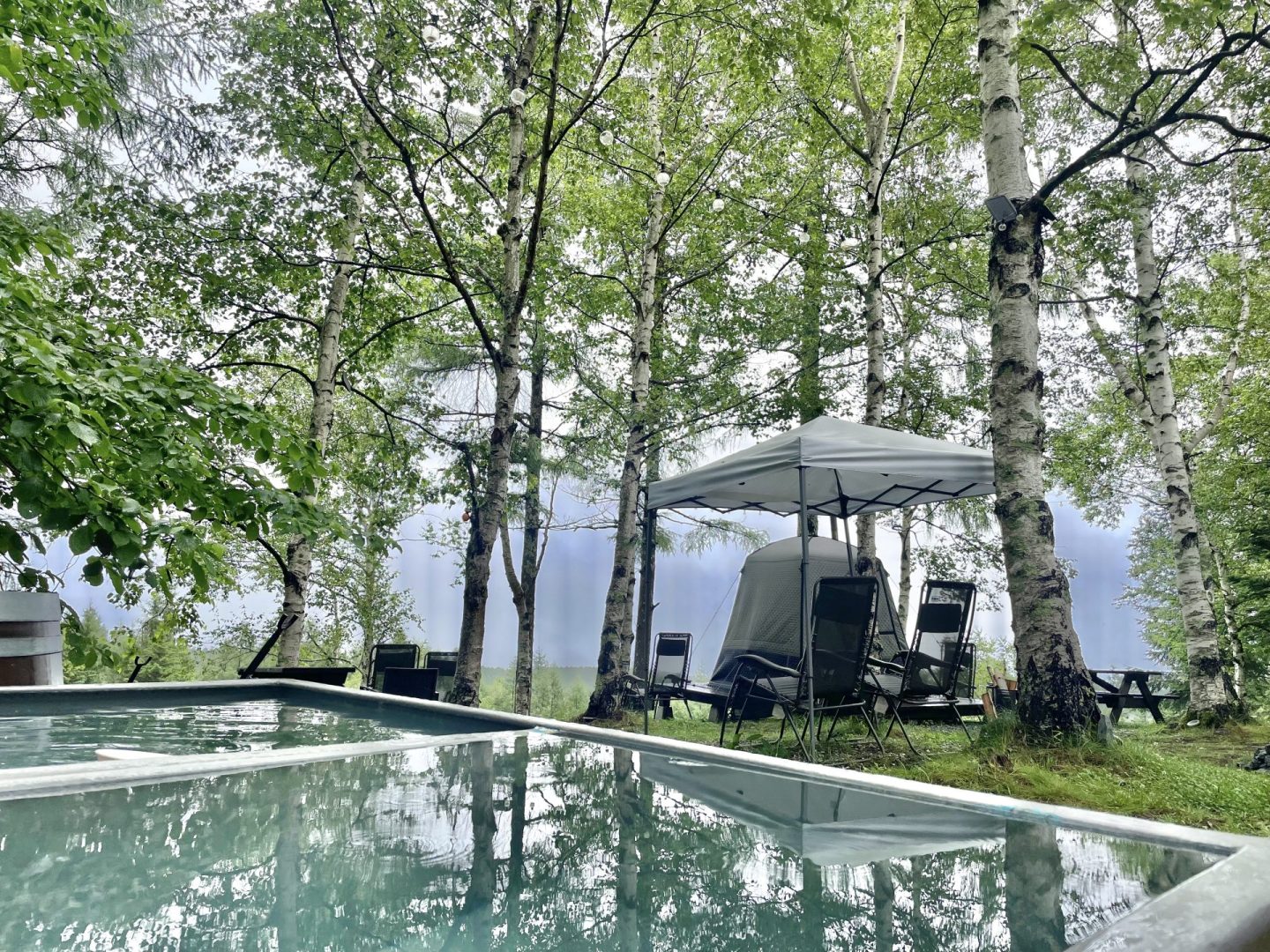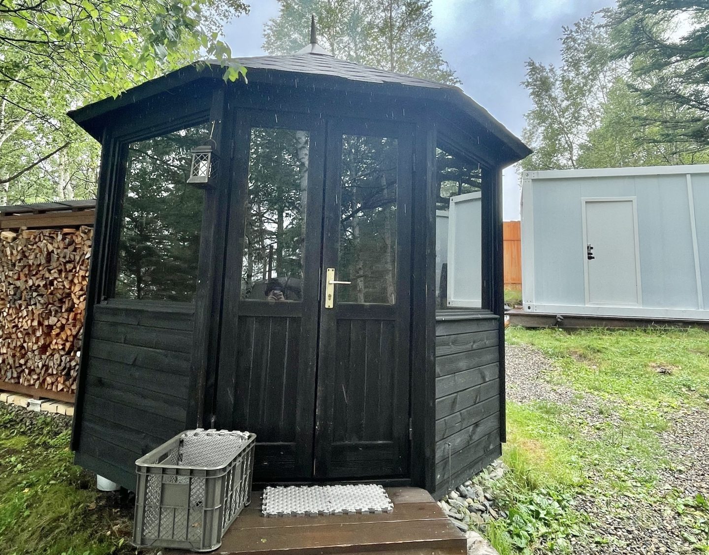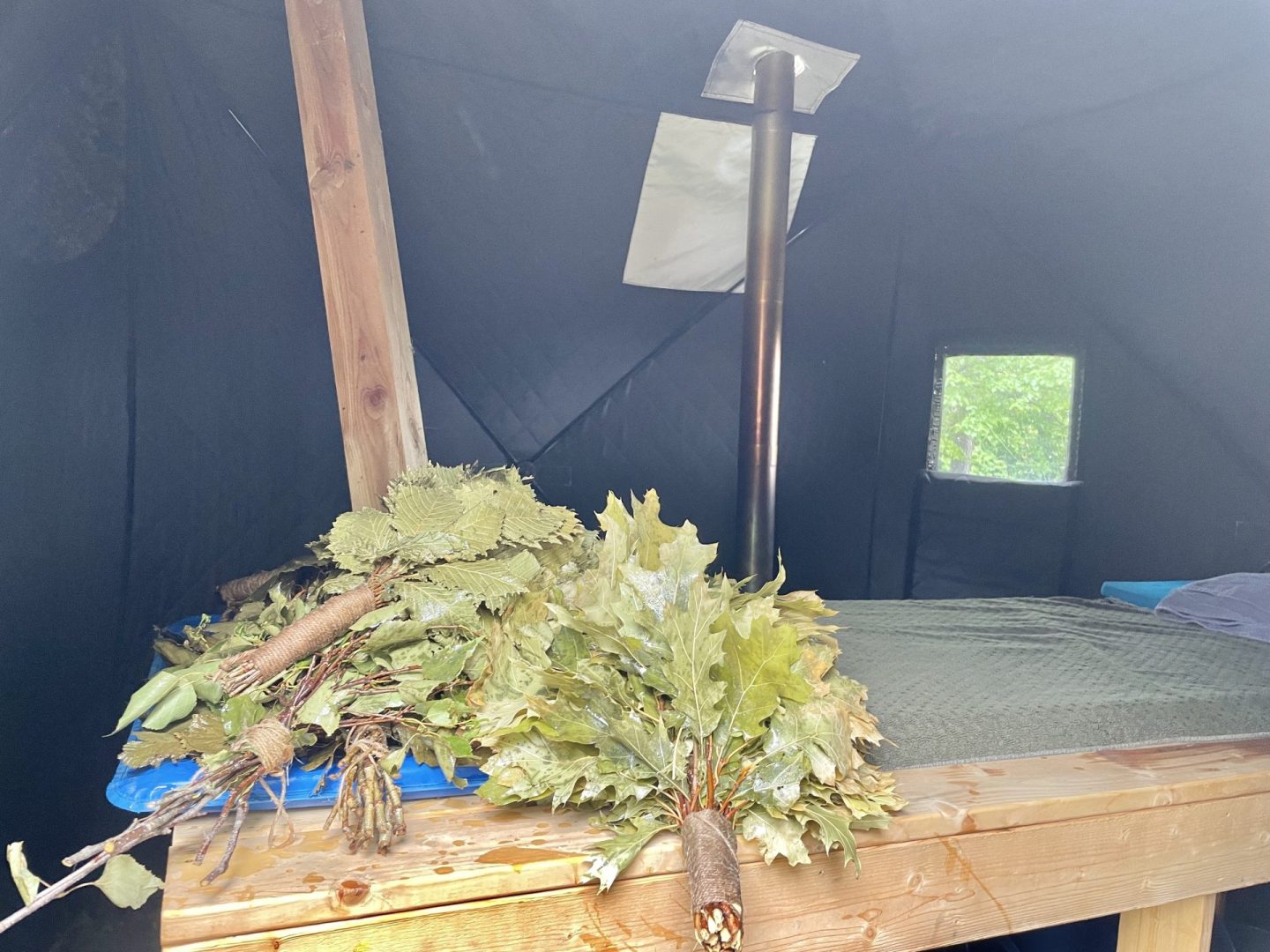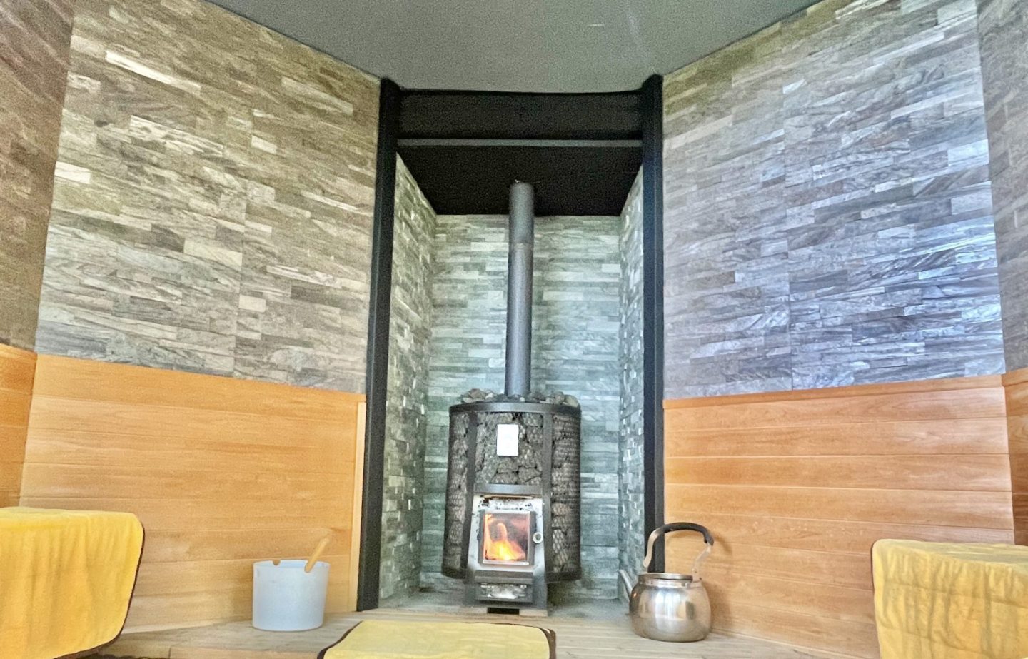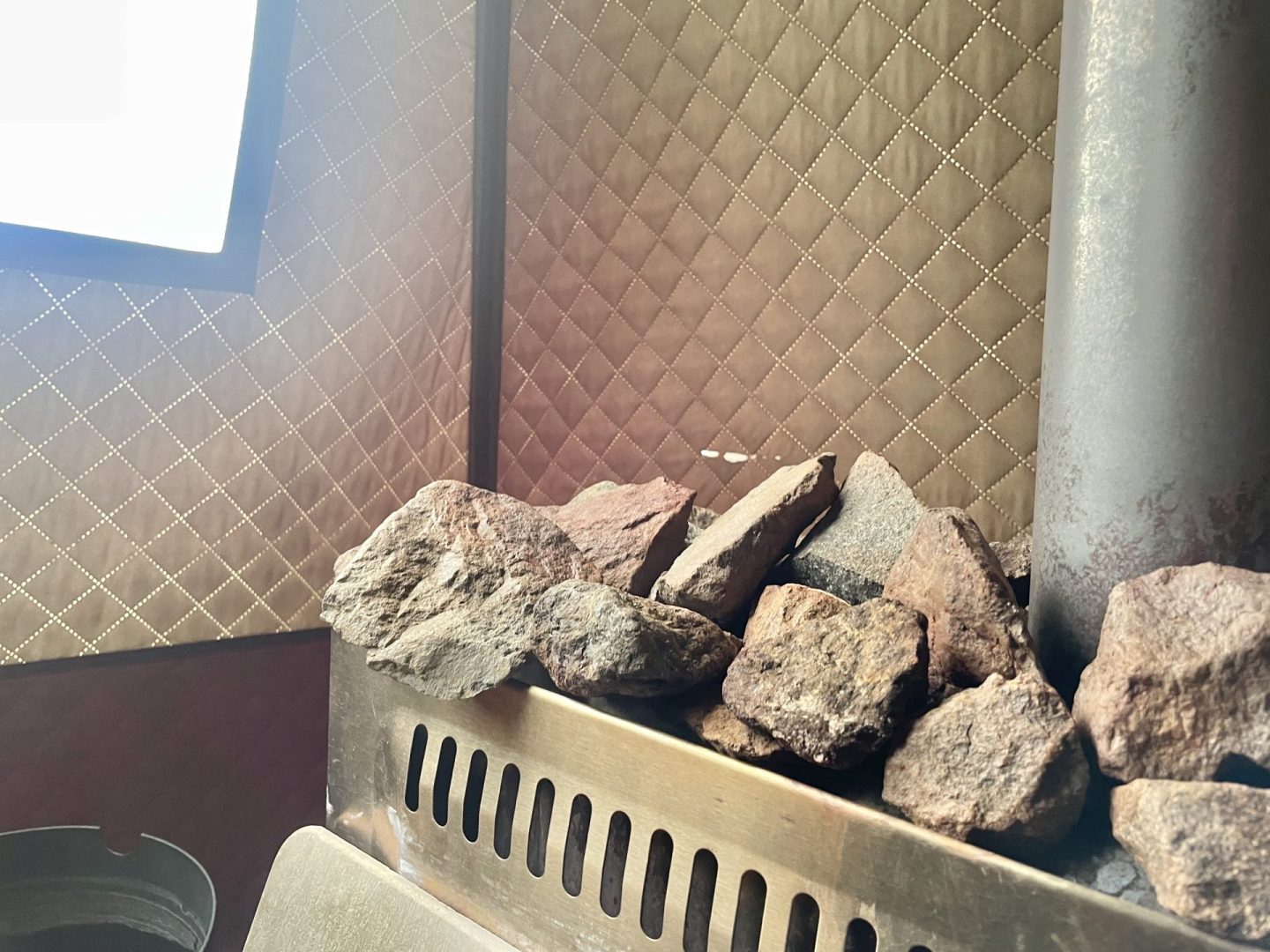 テントサウナ内に薪の香りが漂い、リラックスできます。