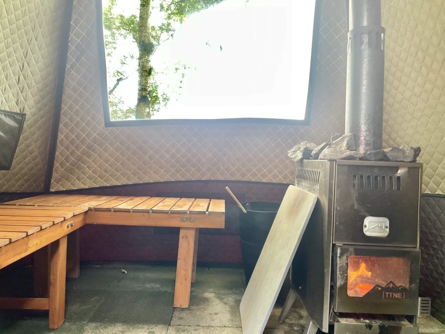 こじんまりしたテントサウナで、こちらも薪サウナ。