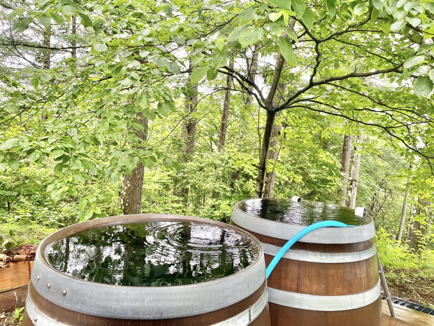「お!隣にはオシャレなワイン樽の水風呂がある!」