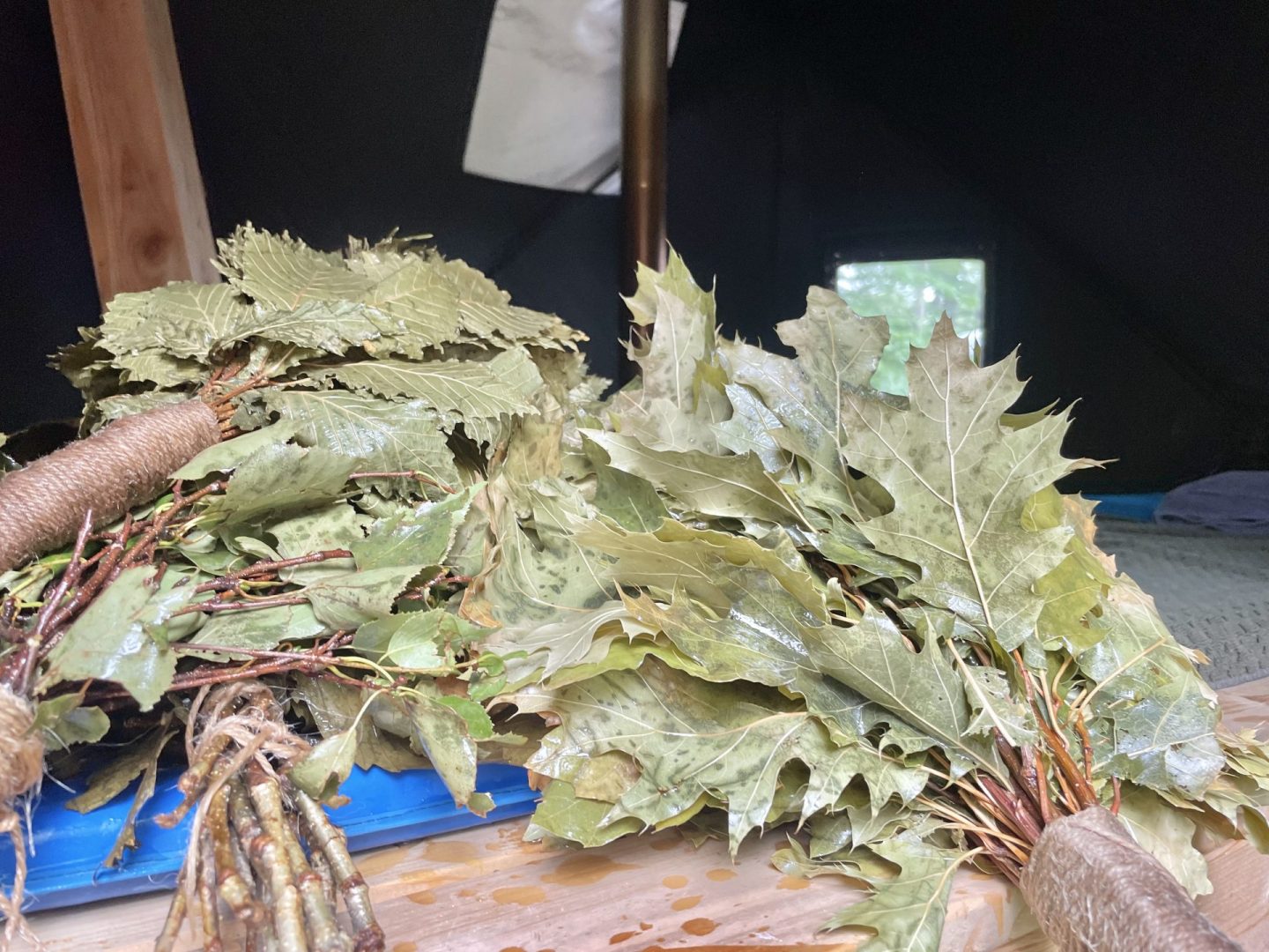 ウィスキングとは、白樺の葉や枝を束ねた「ウィスク」で体を叩いたり、押したりすること。