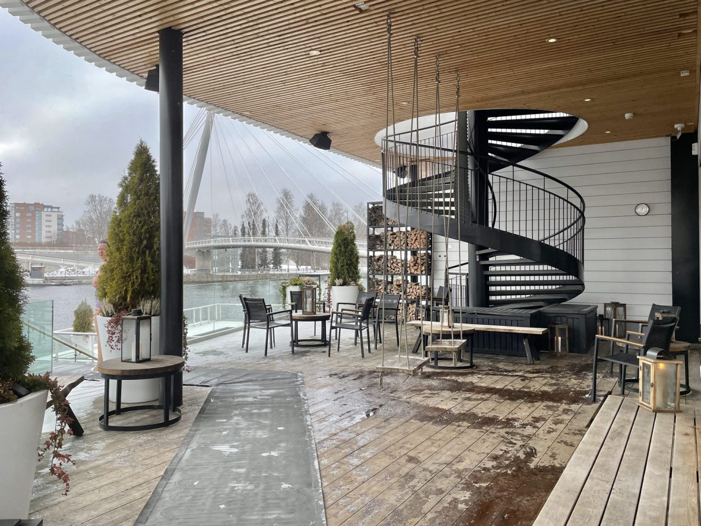 薪サウナは一面がガラス張りで、タンペレの街と川を眺めながらサウナを楽しめるのが最高。