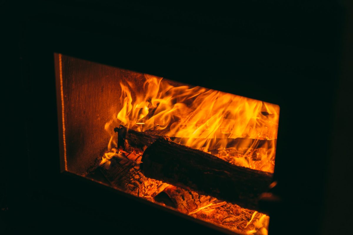 写真で見るよりかなり暗めのサウナ室で薪サウナの薪が燃える様子がしっかりと見える作りです。