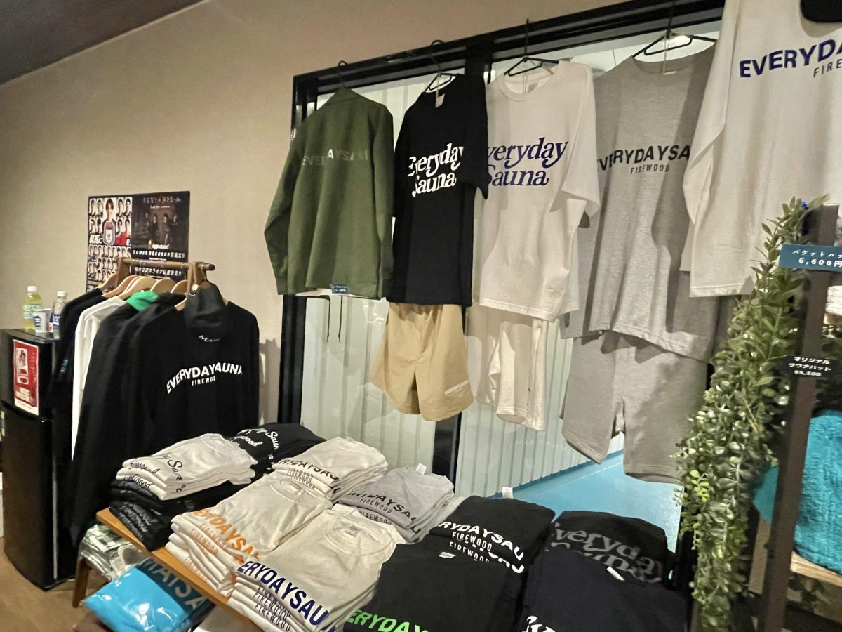 ⚫️毎日サウナオリジナルサウナグッズが多数販売されている。タオル、サウナハット、Tシャツ、パーカー、キーホルダーなど。