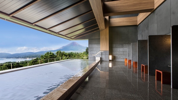 ⚫️湯船あり。サウナが併設された「満点星の湯」では内湯と露天風呂も楽しめる。露天風呂からも富士山を眺めることができる。別の「はなれの湯」では山中湖と富士山を同時に眺められる露天風呂がある。