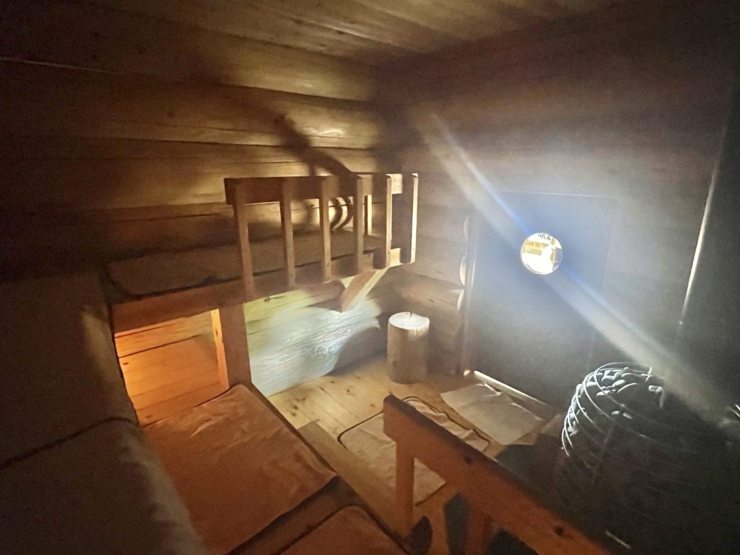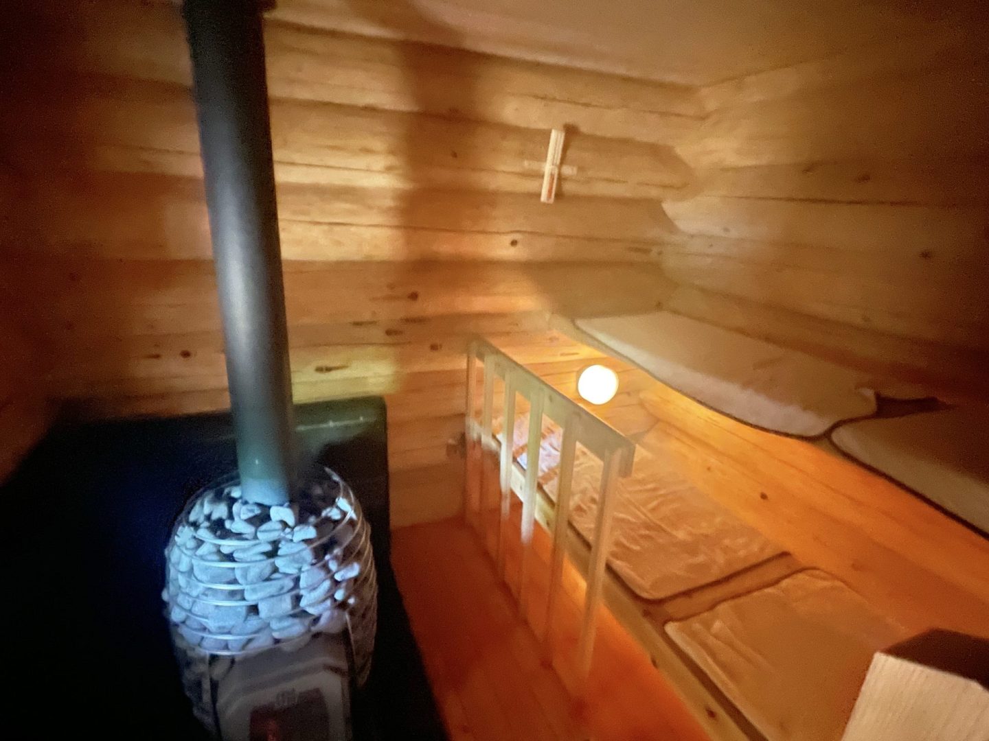 サウナ小屋の木の温もり感じる暖かい雰囲気が良いなぁ