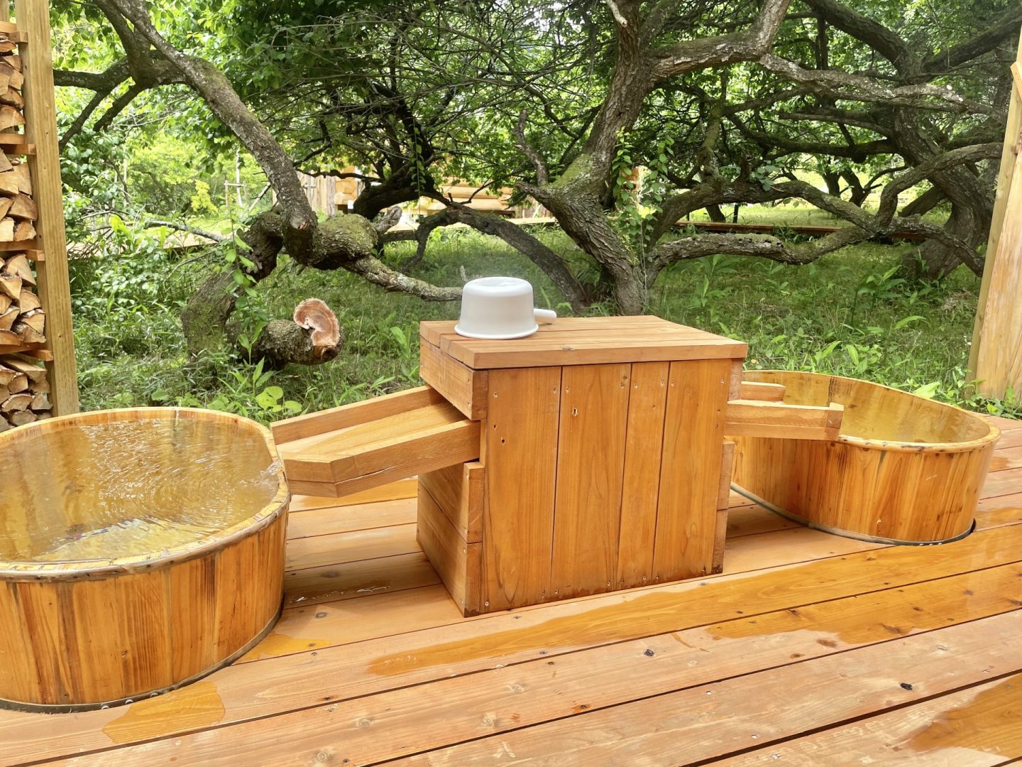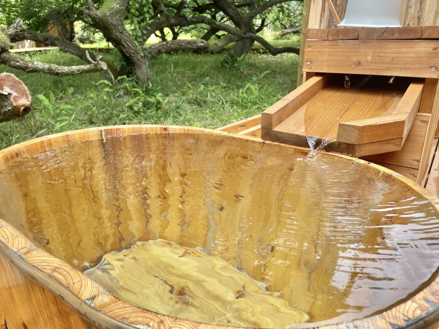 まずは木の温もり感じるつぼ型の水風呂へ。