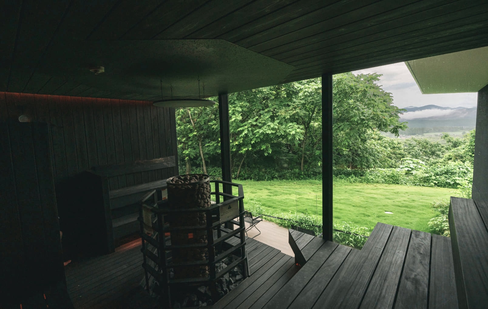 広大な山々や木々を眺めながらサウナに入ることができます。